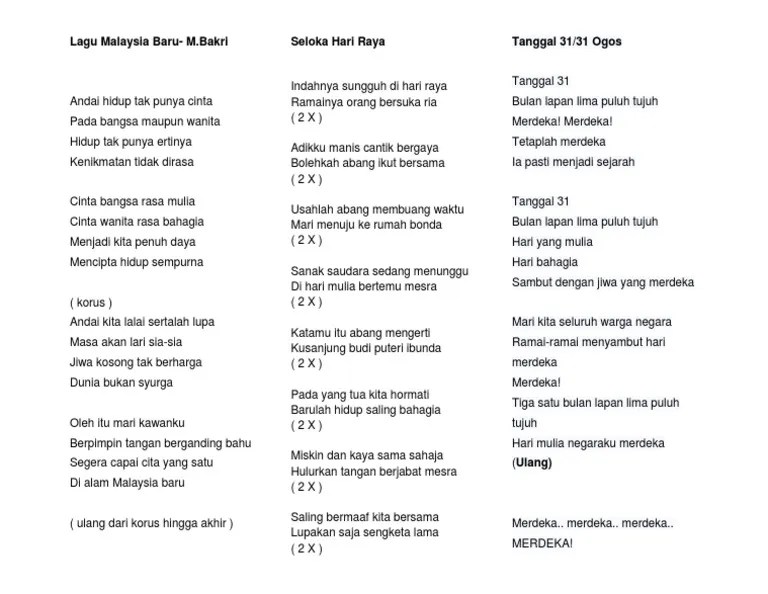 Kita punya malaysia 31 bulan 8,57 perjuangkan pertahankan tanah airku impian aku gemilang baru satu suara laungkan ( .
